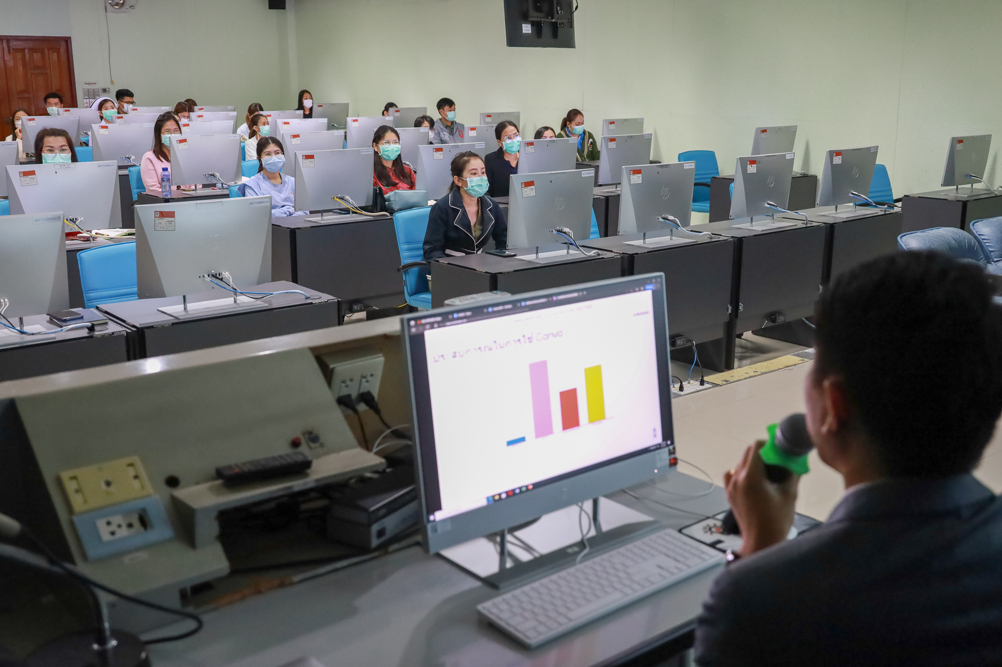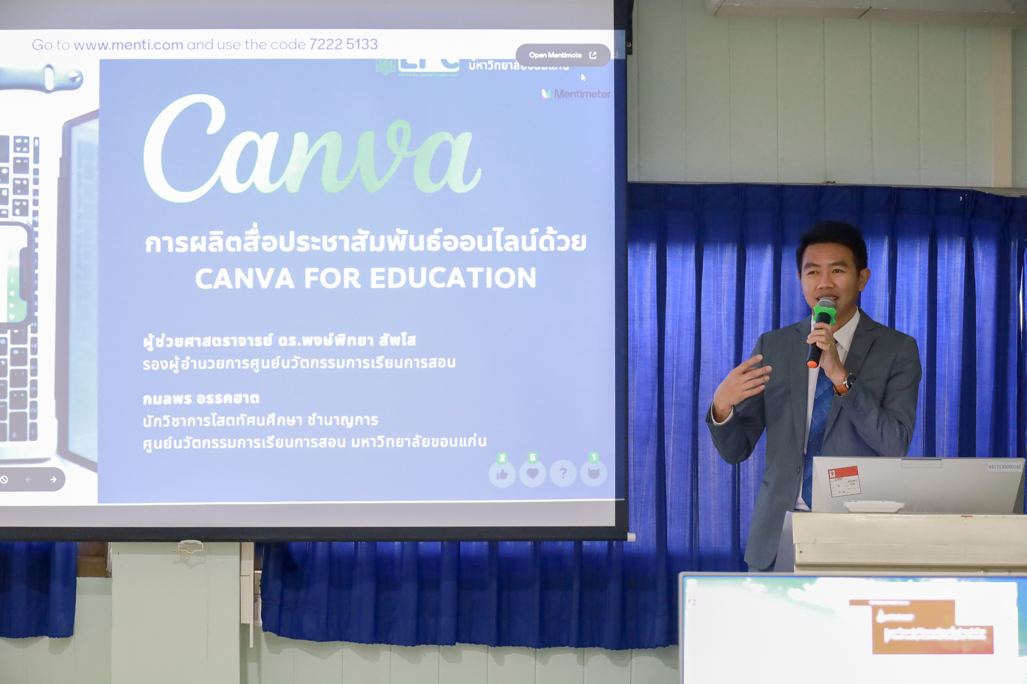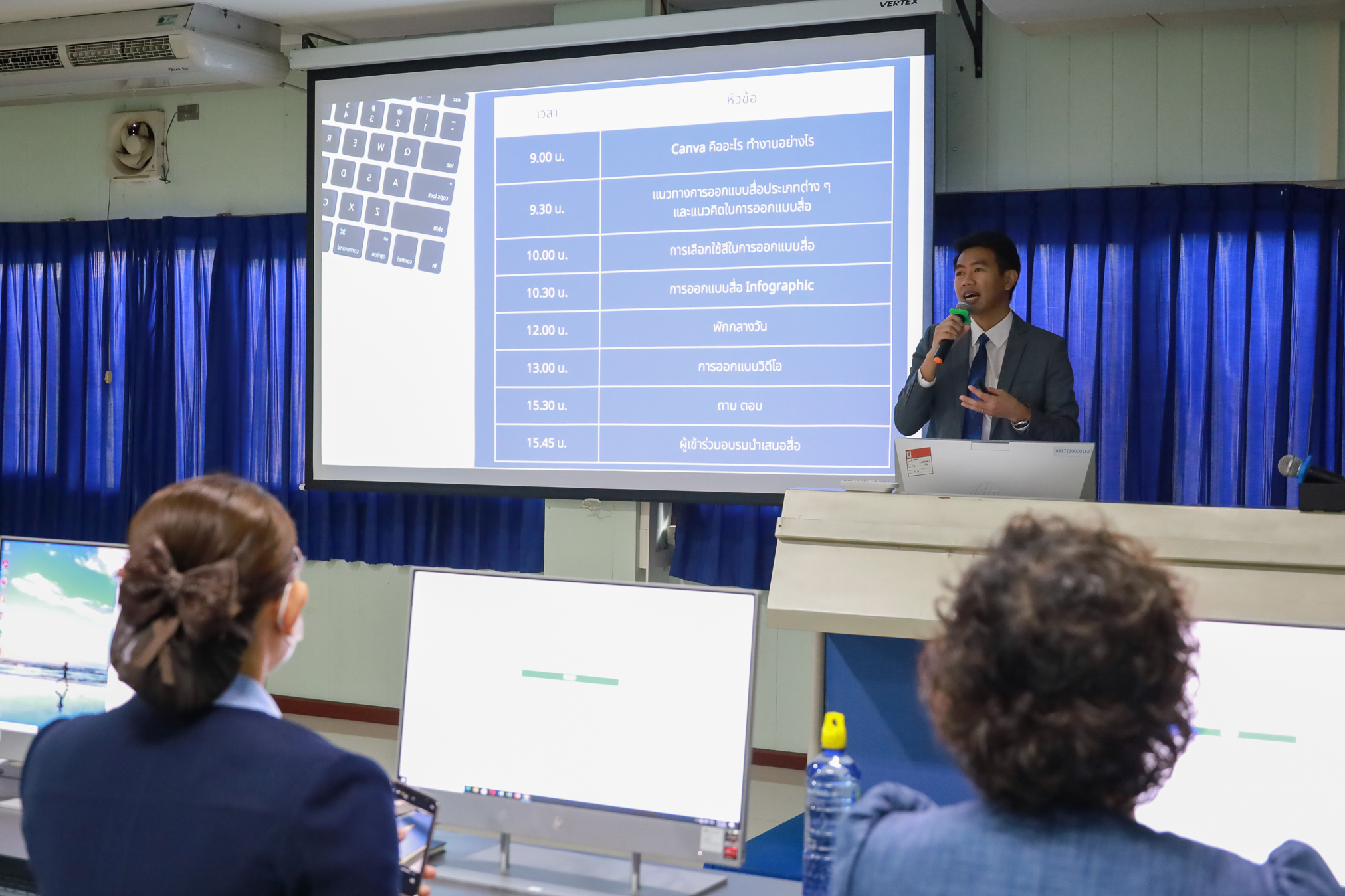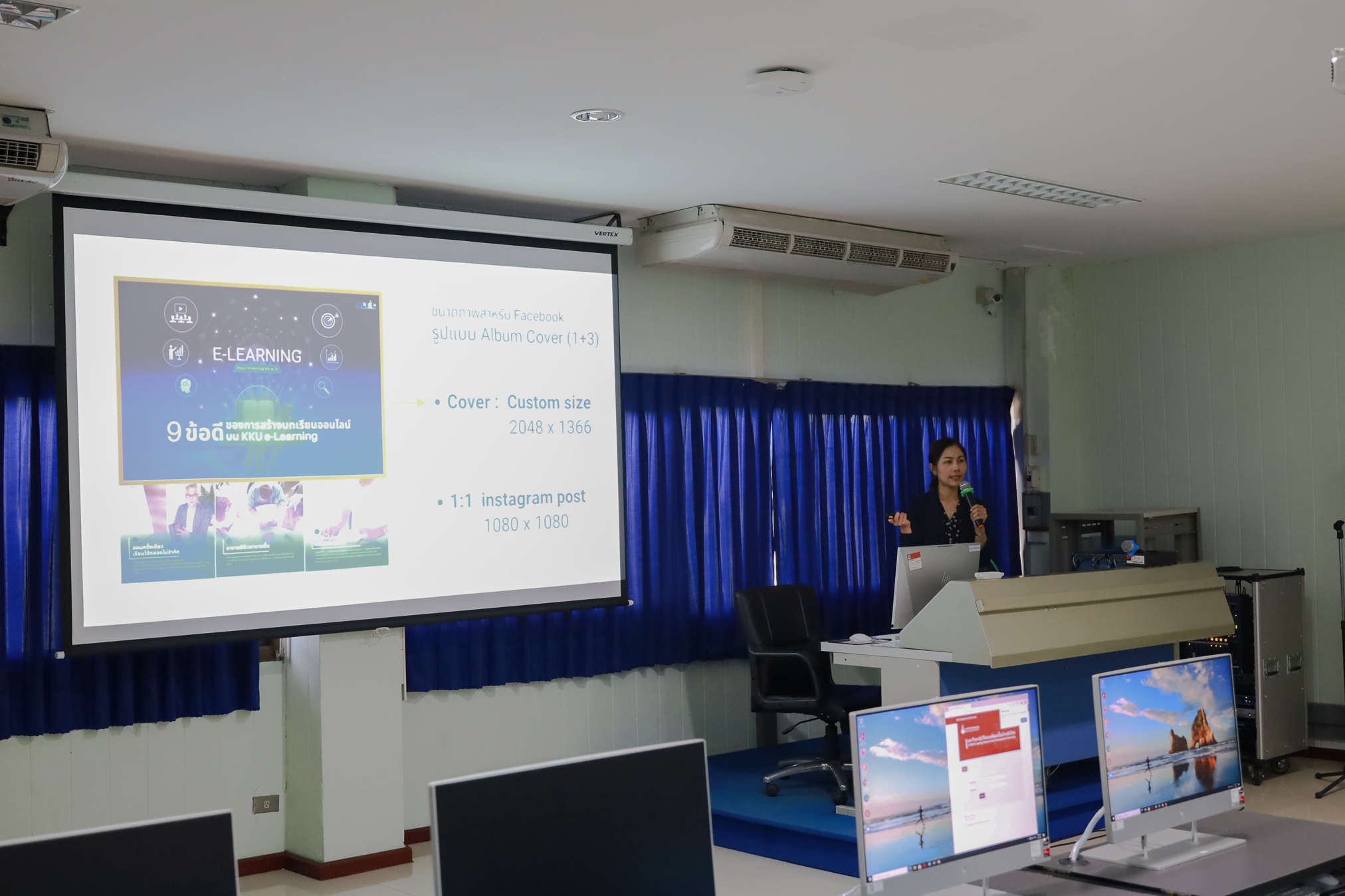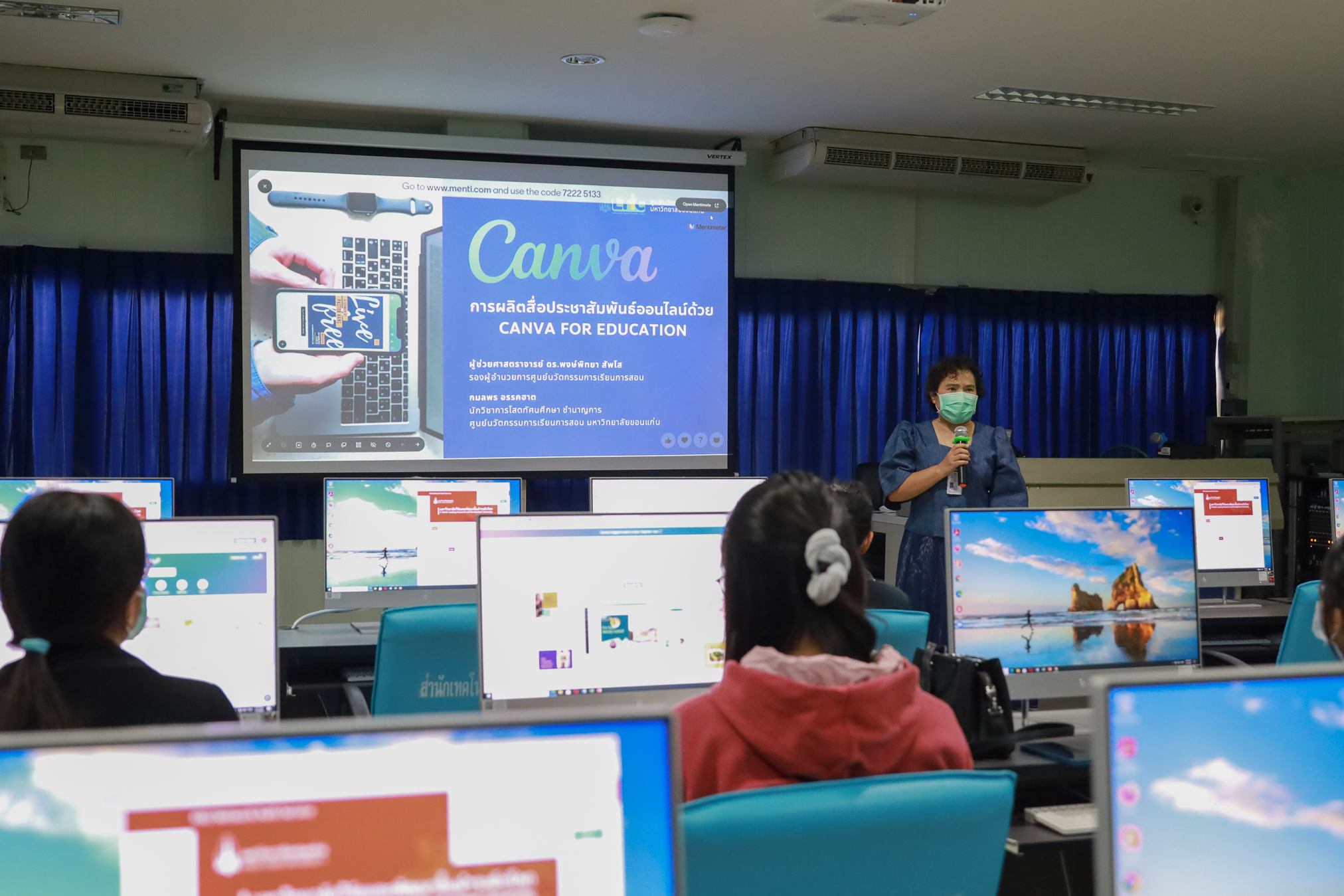 โดยมี ผู้ช่วยศาสตราจารย์ ดร.พงษ์พิทยา สัพโส รองผู้อำนวยการศูนย์ฯ และ นางสาวกมลพร อรรคฮาต ตำแหน่งนักวิชาการโสตทัศนศึกษา ชำนาญการ เป็นวิทยากร ณ ห้องปฏิบัติการคอมพิวเตอร์ 2 ชั้น 4 สำนักเทคโนโลยีดิจิทัล มหาวิทยาลัยขอนแก่น